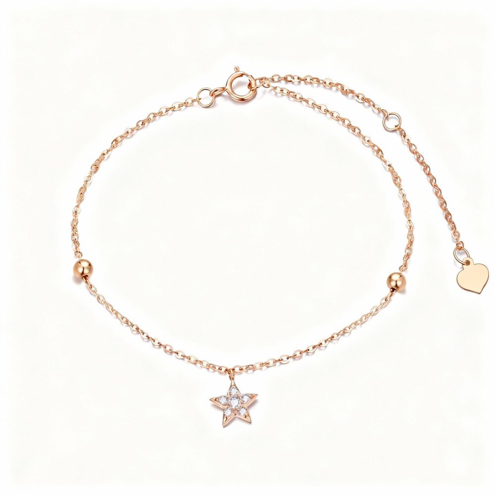 أضيفي لمسة من الأناقة إلى إطلالتك مع سوارنا الرائع المصنوع من ال10K الوارتفع الذهب قيراط، والذي يتميز بتصميم نجمة مرصعة بالماس المذهل والمصمم خصيصًا للنساء اللواتي يعشقن التألق.