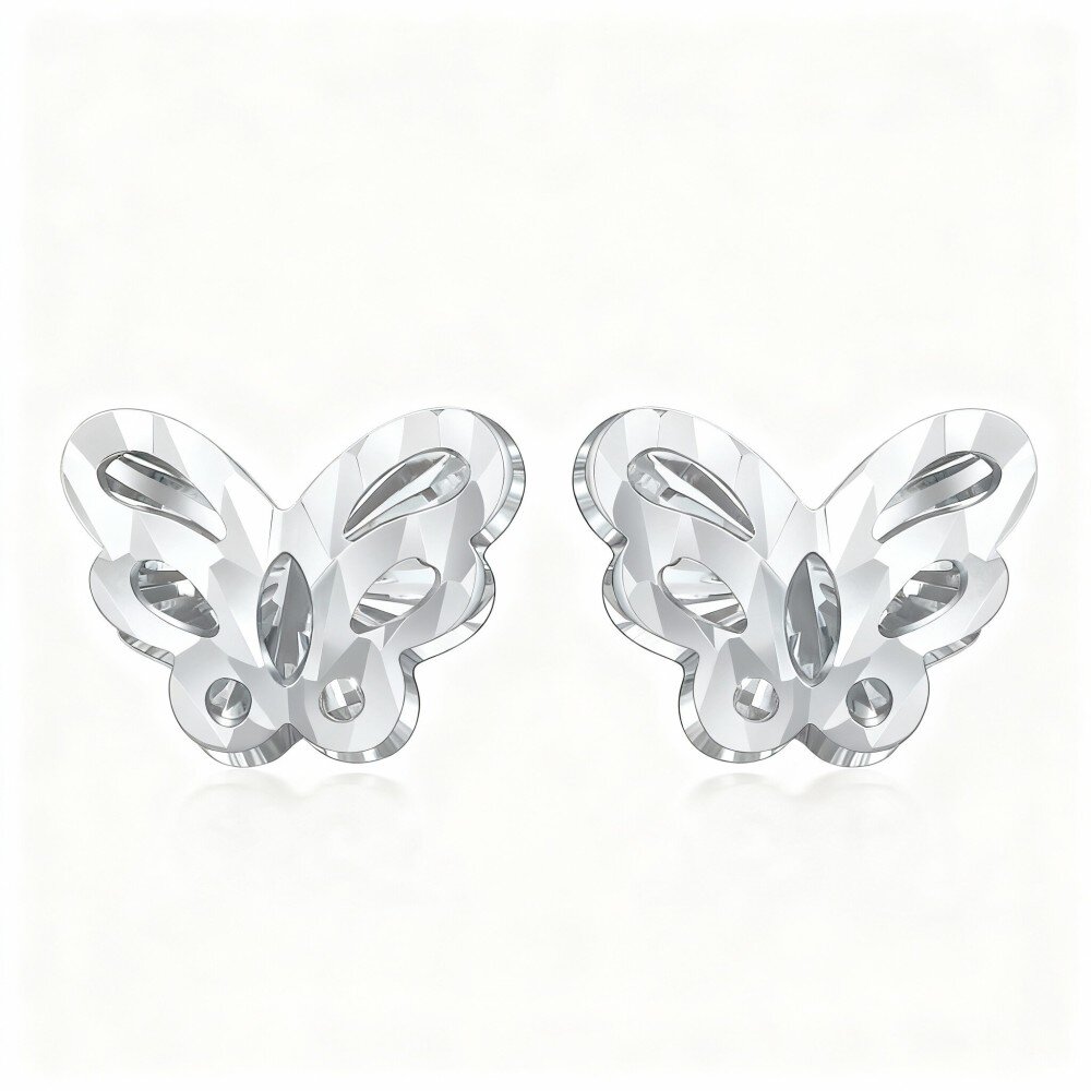 اكتشفي أناقة أقراطنا الرائعة المصنوعة من ال10K الذهب ابيض على شكل فراشة، والمصممة للمرأة العصرية التي تقدر الرقي.