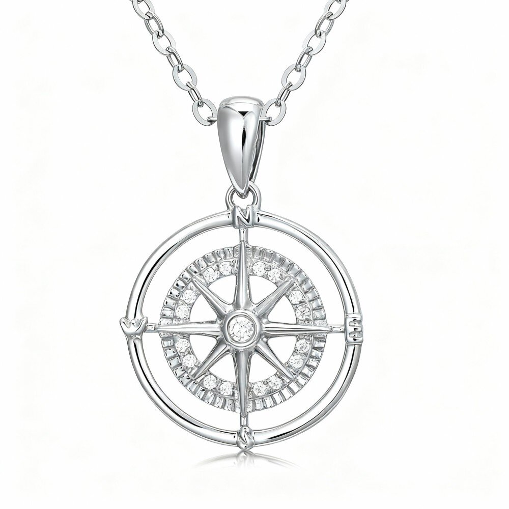اكتشفي قلادة البوصلة الرائعة المصنوعة من ال10K الذهب ابيض قيراط، والمصممة للنساء اللواتي يتحلين بالأناقة والمغامرة.