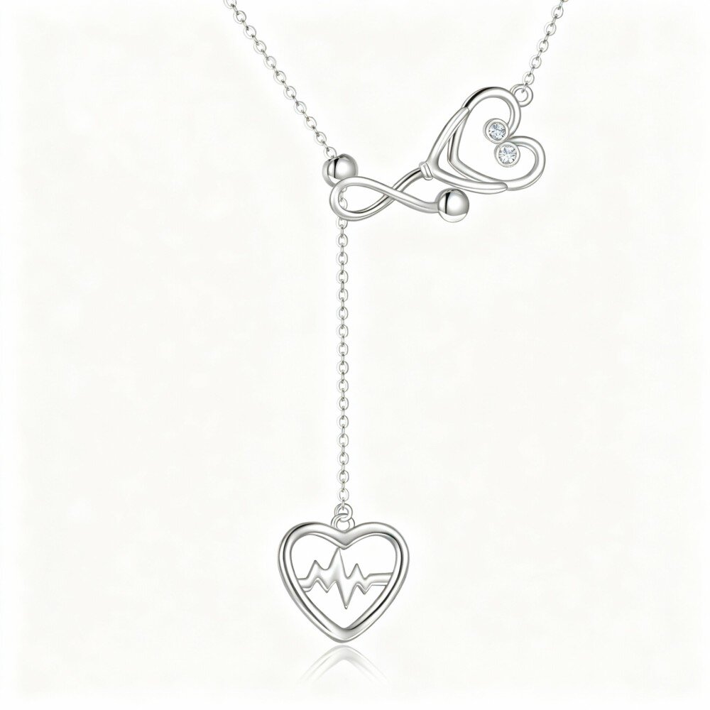 اكتشفي الأناقة مع قلادةنا الرائعة المصنوعة من ال10K الذهب ابيض، بتصميم على شكل قلب يضم سماعة طبية وزركونيا لامعة، وهي مثالية لمحبي المجوهرات ذات المعنى.