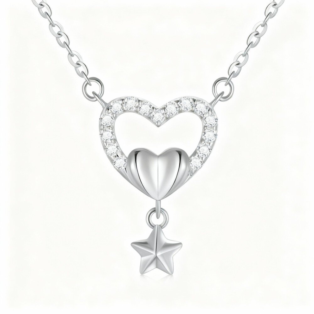 اكتشفي أناقة قلادة قلب من ال10K الذهب ابيض قيراط مزينة بزركونيا مكعبة لامعة، وهي الخيار المثالي للجمال الخالد.