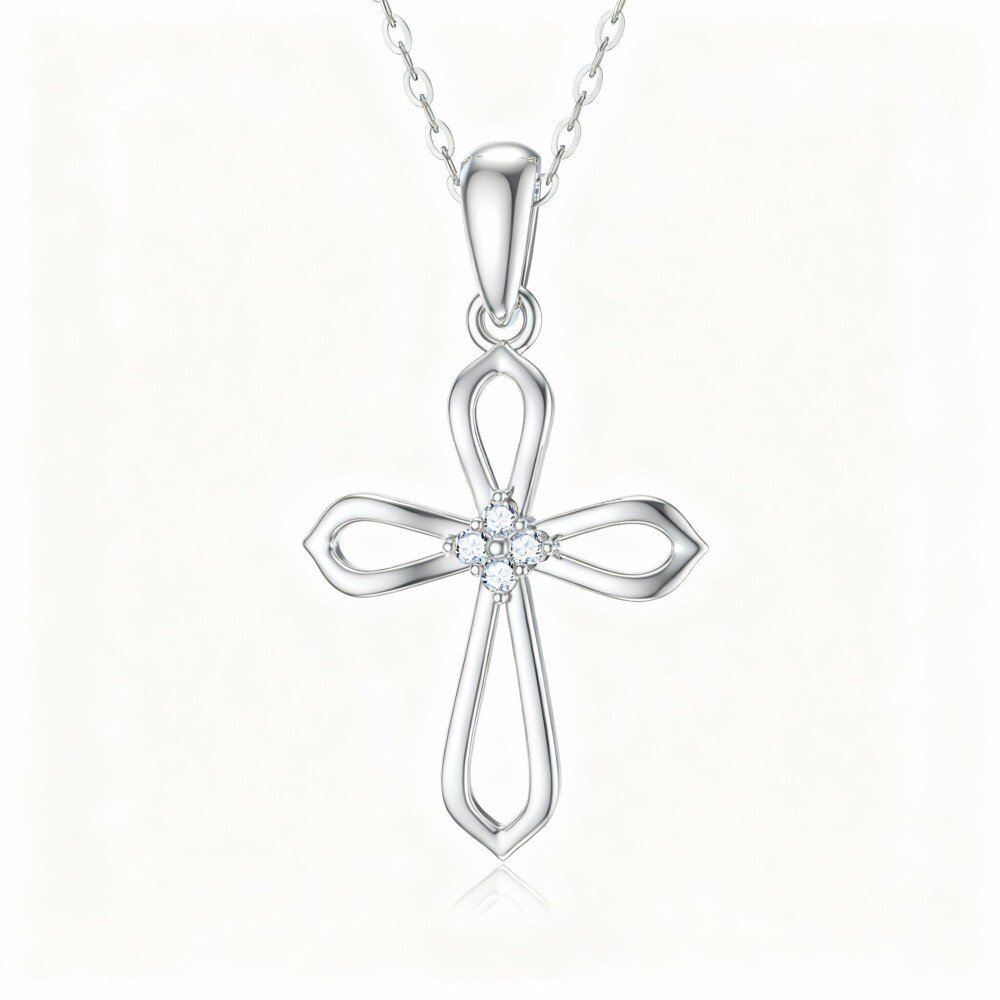 استمتعي بأناقة خالدة مع قلادةنا المذهلة المصنوعة من ال10K الذهب ابيض، والتي تتميز بصليب مرصع بالماس يشع بالرقي والأناقة، مما يجعلها مثالية للمرأة العصرية.