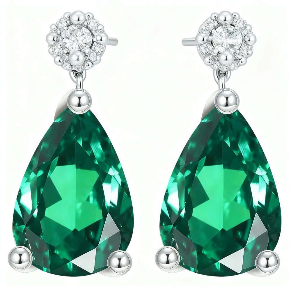 أضيفي لمسة من الفخامة إلى مجموعة مجوهراتك مع أقراطنا الرائعة المصنوعة من ال10K الذهب ابيض قيراط على شكل قطرة الزمرد، والمصممة خصيصًا لمن تقدر الأناقة والرقي.
