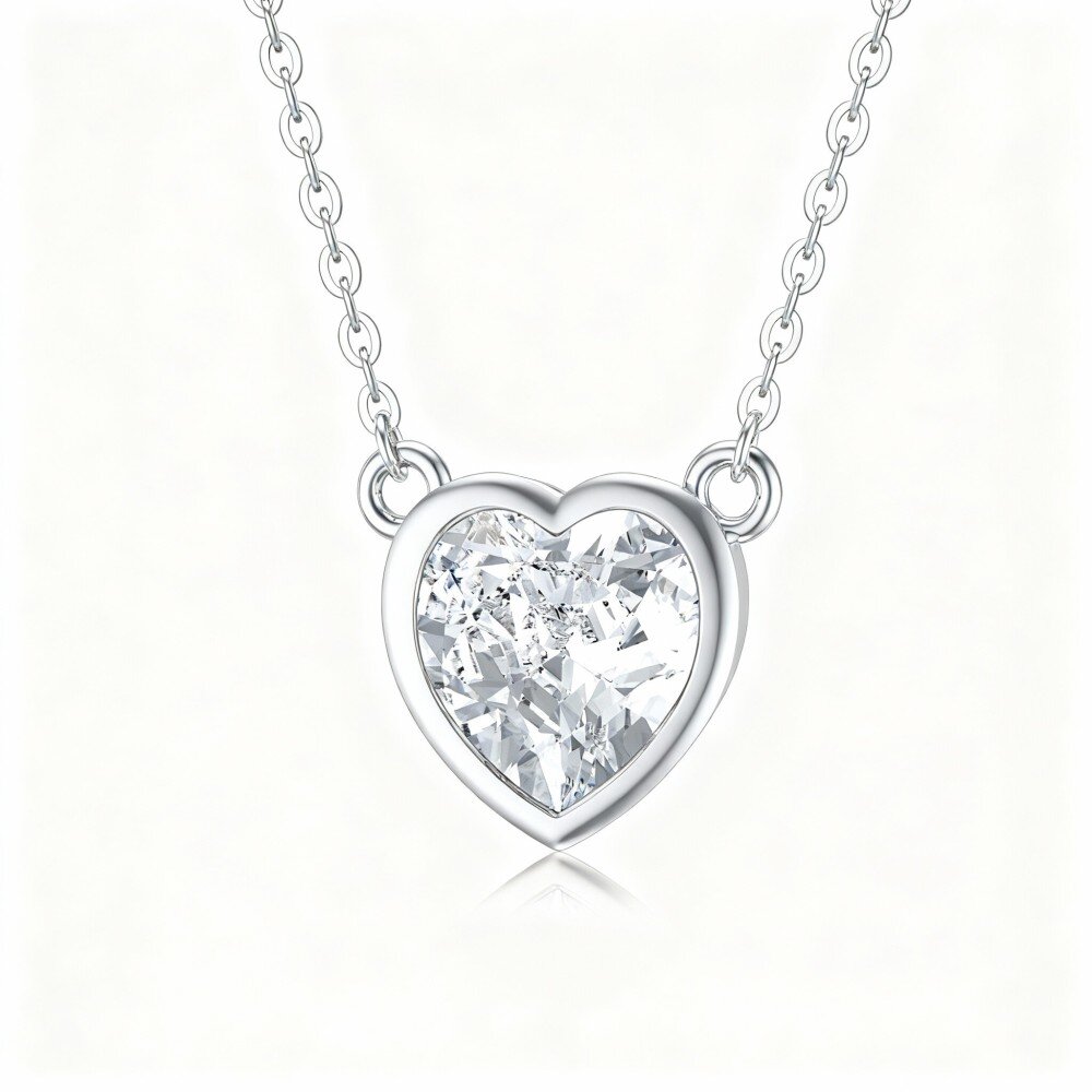 اختبر الأناقة والسحر مع قلادة من ال10K الذهب ابيض قيراطات مرصعة بمويسانيت على شكل قلب، وهي إضافة مثالية لأي مجموعة مجوهرات.
