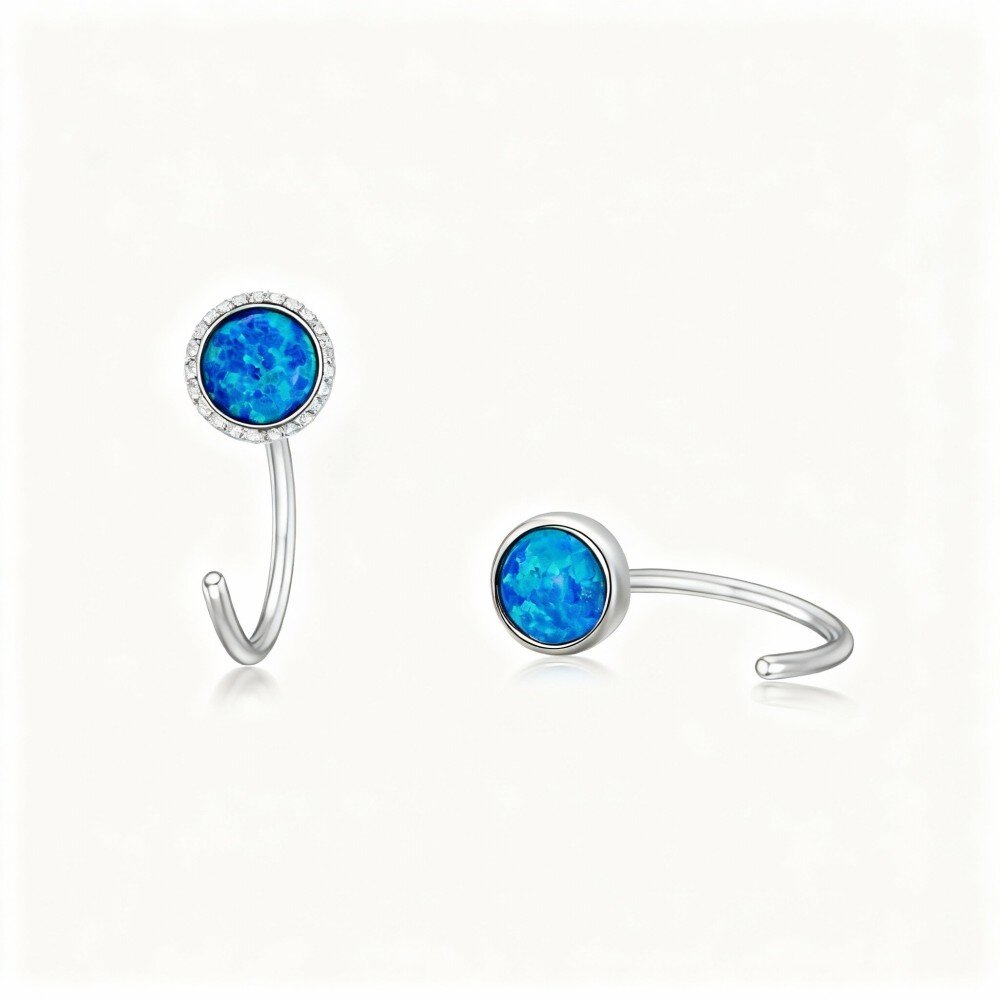 اختاري أقراطنا المعلقة من ال10K الذهب ابيض قيراط، المصممة بعناية للنساء اللواتي يعشقن جمال أحجار الأوبال الزرقاء الساحرة.