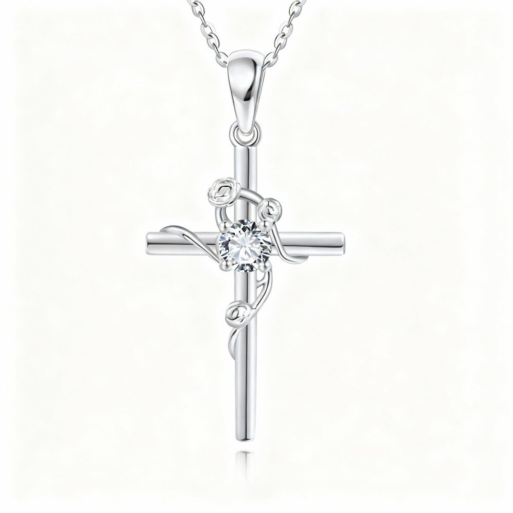 /10k-white-gold-round-cut-cubic-zirconia-rose-&-cross-pendant-necklace-p75040247