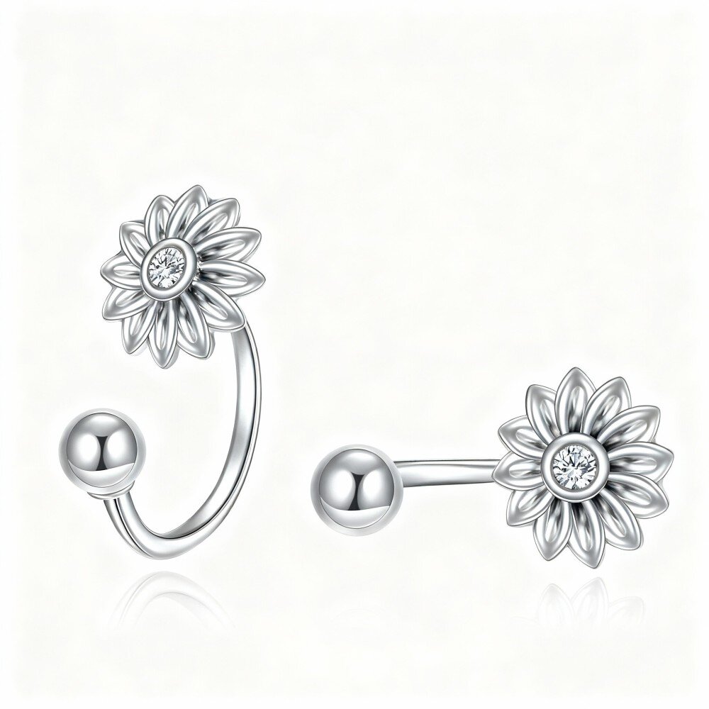 استمتعي بأقصى درجات الأناقة مع أقراطنا المصنوعة من ال10K الذهب ابيض قيراط على شكل زهرة عباد الشمس، والمزينة بزركونيا لامعة، مما يجعلها إضافة مثالية لأي مجموعة مجوهرات.
