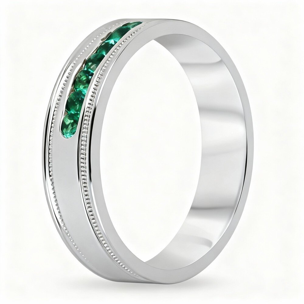صُنعت خاتم الزواج هذا من ذهب ابيض عيار 10K عالي الجودة، وهو ليس متينًا فحسب، بل يوفر أيضًا لمعانًا فاخرًا، مما يجعله الخيار المثالي لأي مناسبة. تضفي الزمردة، المشهورة بلونها الأخضر المذهل، لمسة من الأناقة، بينما يعزز تصميم الأحجار الجانبية بريق الخاتم وأناقته. تتيح لك خياراتنا المخصصة تخصيص هذه القطعة لتعكس أسلوبك الفريد وقصة حبك، مما يجعلها كنزًا خالدًا ستعتز به إلى الأبد.